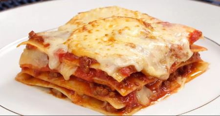 Fatia de lasanha bolonhesa Carne moida, presunto , mussarela